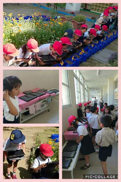 今日はカメラ機能を使ってあさがおの写真を撮りました。