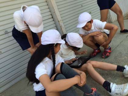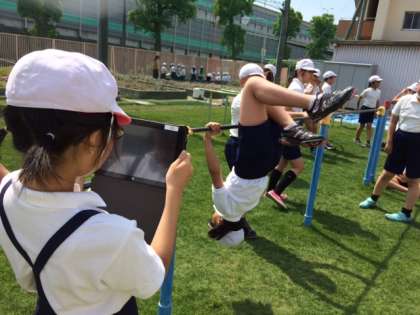 体育の鉄棒運動で、タブレットを使って、動画をいくつか撮り、比較をしました。
