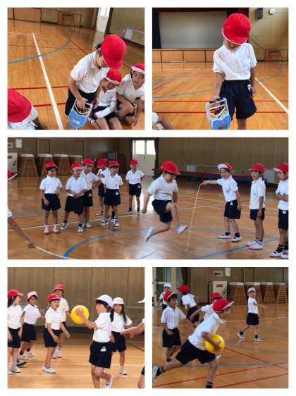 今日の体育は、「握力測定」「ゆらゆら大縄」「ドッジボール」の三本立て!雨でもなんのその、子どもたちは元気いっぱいです♪