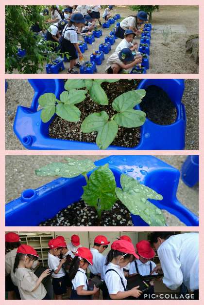 土日の暑さを乗り切り、あさがおは元気に子ども達を迎えてくれました。