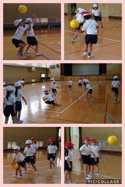 講堂でミニミニドッジボールを楽しみました。