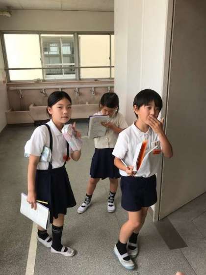 私たちの水を学習している子どもたちに、身近なところにある水に関心をもたせるために、学校の蛇口はいくつあるのかを調べました。