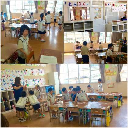 子どもたちはクラスの友達と協力し、元気いっぱいに店番をしていました。また、縦割り班のお兄さんお姉さんと一緒にいろんなお店を回って遊び、楽しく充実した日になりました♪