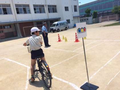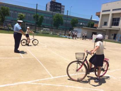 自転車の乗り方では、一旦停止・左右確認・右後方確認など、全員が実際に自転車に乗り、確認していきました。