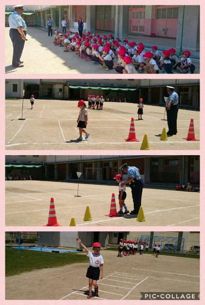 二時間目は前半をDVD観賞、後半を運動場での模擬体験で、此花警察署のお巡りさんに命を守る方法を丁寧に教えていただきました。