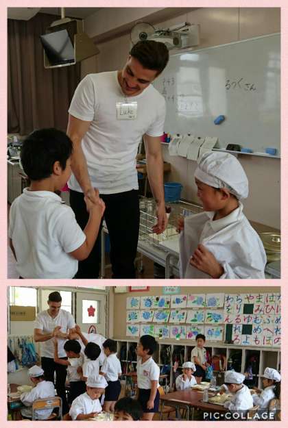 給食の時間にはオーストラリアご出身のLukeさんが教室に来てくださいました。