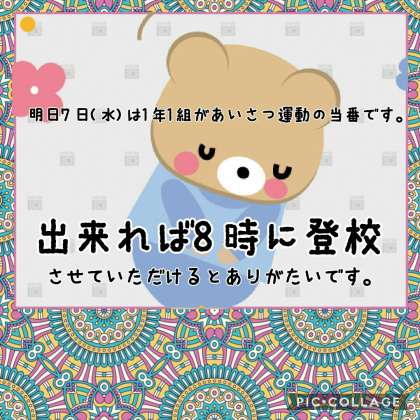 5日(月)〜14日(水)まで、あいさつ運動が実施されています。