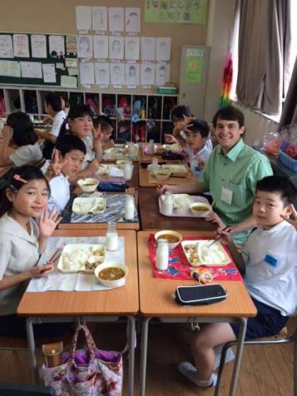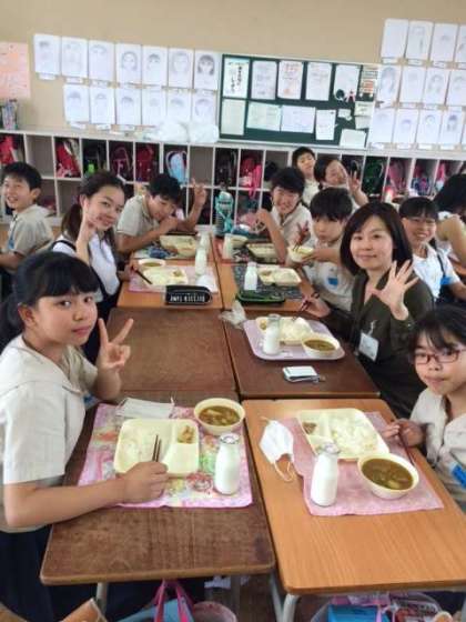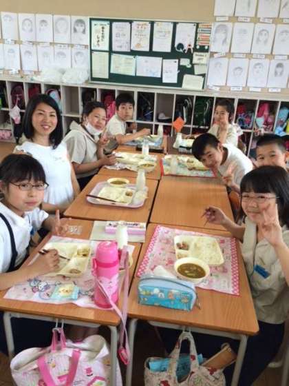 4時間目はUSJの皆さんと交流し、給食はエリック先生と、USJの日本人スタッフの方々と楽しく過ごしました。