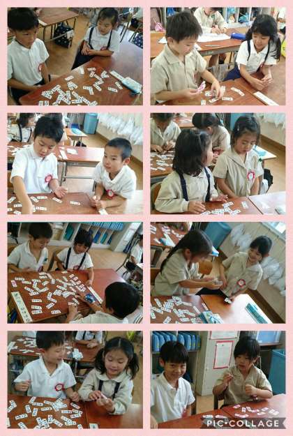 足し算カードを使って、ペアで足し算クイズをしました。