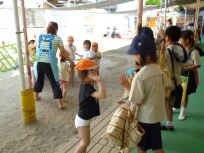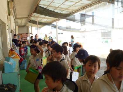2年生で町たんけんに行きました。みんなで作った旗をもって探検しました。