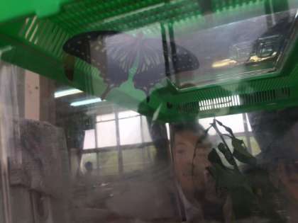 朝子どもたちが登校したときはさなぎでしたが、2時間目に図工室に行っている間に蝶になっていました。