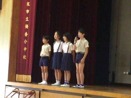 修学旅行へ行って学んだことを発表し、セレモニーの様子をみんなに観てもらいました。