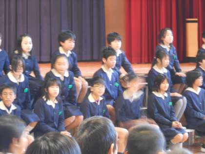 子どもたちは一生懸命取り組んでいました。卒業生もしっかり見ています。