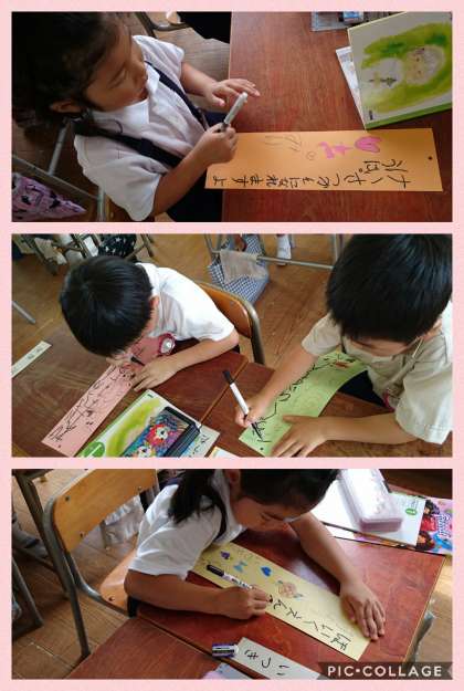 隙間時間を利用して作っていた七夕の短冊が出来上がりました。