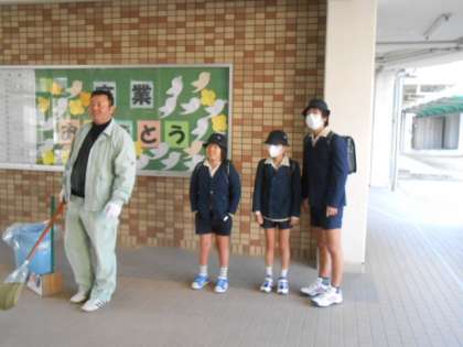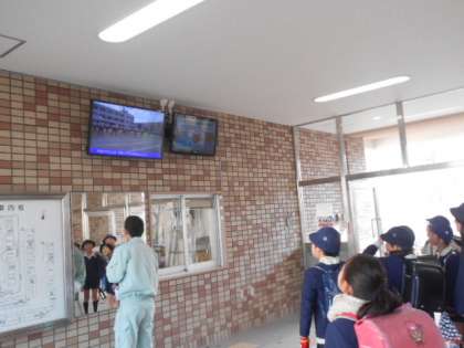 今日、朝から玄関先に設置したデジタルサイネージに子どもたちは注目しています。