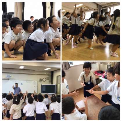 「Rock Scissors Paper 1,2,3!」ライアン先生の英語活動。元気な声が教室に響きます。特にジャンケン大会は大盛り上がり。英語活動の時間が終わった後も、休み時間に「さっきの英語のジャンケン一緒にしよう!」と、生き生きと遊ぶ姿も見られました。