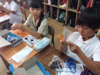 風やゴムのはたらきの単元で実験用の車を作りました。