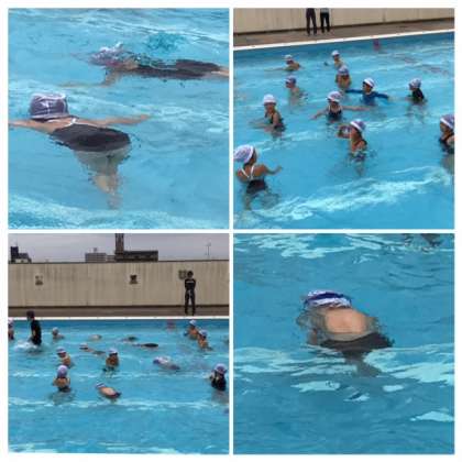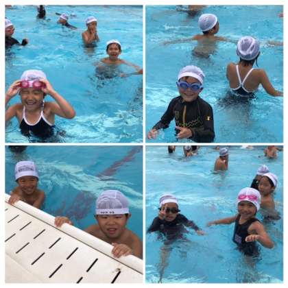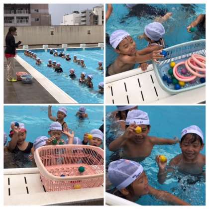 どんどん水に慣れ親しむ子ども達、今日は色々な浮き方にチャレンジしました。「大の字浮き」に「クラゲ浮き」そして「だるま浮き」!上手に浮けた子も、今日はうまく浮けなかった子も、どの子もとてもいい表情でチャレンジしていましたよ。