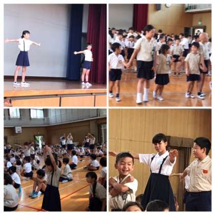 今日は久しぶりの英語集会!朝から「もうすぐ6年のお兄ちゃん、迎えに来てくれるかな?」と、ソワソワしながら待つ子ども達。集会の内容は、子ども達が大好きなジャンケンゲームでした。「Rock Scissors Paper 1,2,3!」元気な声が講堂に響きました♪