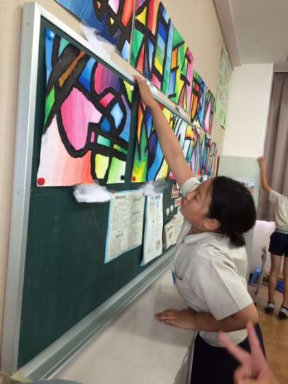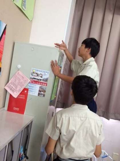 「クリーン大作戦」ということで、まずは、教室と廊下のよごれチェックをしました。