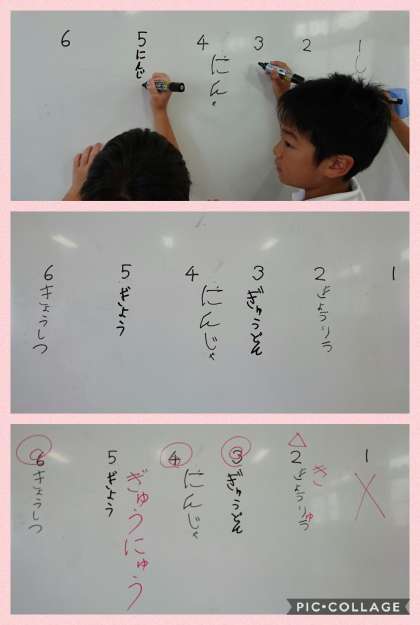 今日は班で『小さなゃゅょ』の入る言葉見つけをしました。