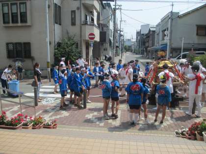 とてもお天気の良い中、子どもたちは笑顔でみこしをひいていました。