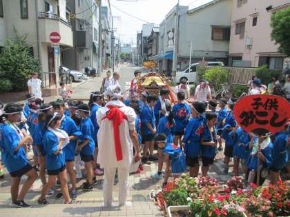 今年も、住吉神社夏祭りの子どもみこし巡行がありました。