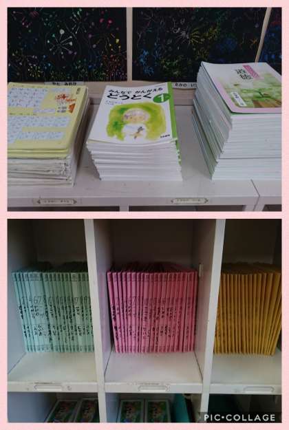 夏休みの間、教室で保管するファイルや副読本が集められ…
