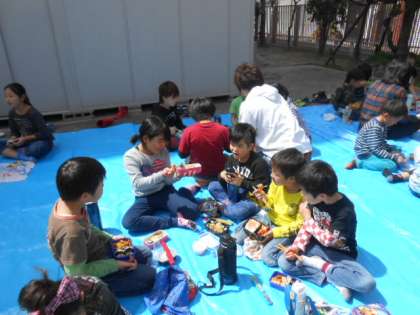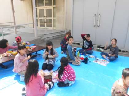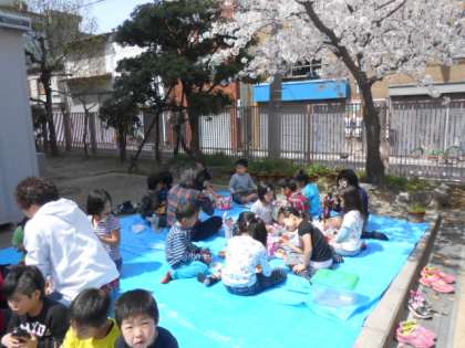桜は、今5分咲きの状況です。天気が良いので外でお花見をしながらお昼をしました。