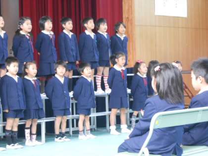 2年生の歓迎の演技。おにいちゃんおねえちゃんとなった2年生が頑張りました。