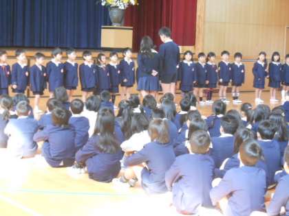 一年生の対面式も行われました。緊張する一年生とそれを温かく見守る上級生。一年生のあいさつも上級生の校歌も素晴らしかったです!