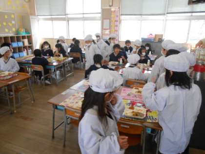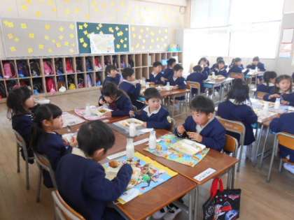 「初めての給食だ!」一年生の教室に入るとこんな声が。可愛らしいですね。もしよかったら今日の給食メニューは何だったか聞いてあげてください。