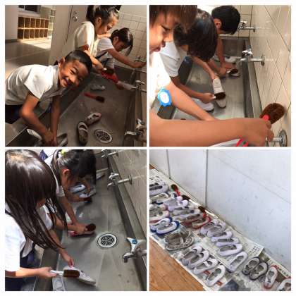 午後からは、「自分のできることを増やそう」をめあてに、上ぐつ洗いの練習をしました。シューズブラシを片手に、みんな真剣な表情で上ぐつを洗いましたよ。これでこれからは、おうちでも自分で靴が洗えます♪