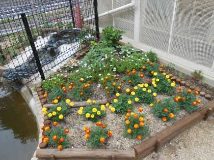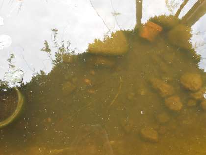 ビオトープの周りは花がいっぱいになりました。池を見ると・・・・・ザリガニがたくさんいます。どうやら20匹ぐらいいそうです。