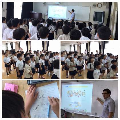 2学期、第1回目の英語活動!子どもたちが楽しみにしている時間がやってきました!1学期の復習から始まり、アルファベットのG・Hの書き取り学習、20までの数の学習など、子ども達の笑顔が溢れる充実した1時間となりました♪