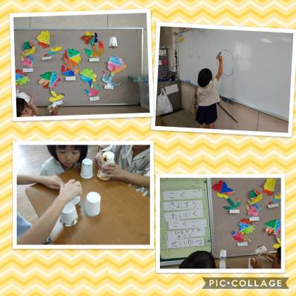 今日は前の時間に作ったおもちゃを、どうすればより飛ばすことができるかを話し合い、いろいろ試しました。