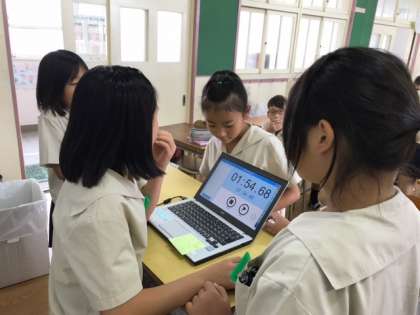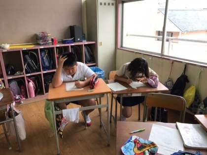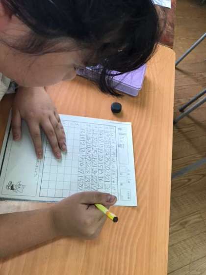 今日は『学力アップ会社』が、100マス計算大会をしていました。