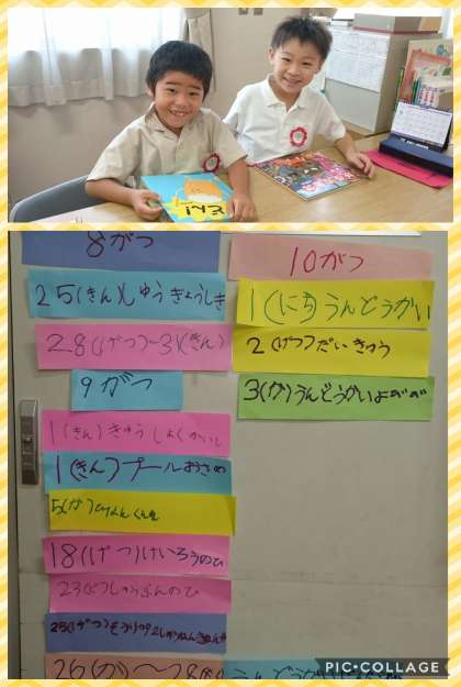 月の予定を書き、教室の入口に貼り出してくれます。