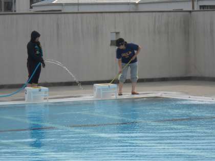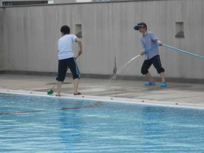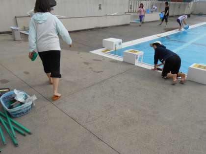 プール開きに向けて、プールを清掃しました。小学校の年中行事です。今年もご安全に!