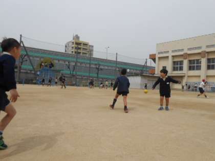 二時間目の休み時間に、子どもたちと元気に走り回りました。ボールを当てる遊びです。その中で、ボールが顔に当たって泣いたり、ルールに納得してなくて言い争いになったりしていましたが、それを経て成長していくんですよね。これも遊びの醍醐味です。みんないい顔で遊んでいました♪