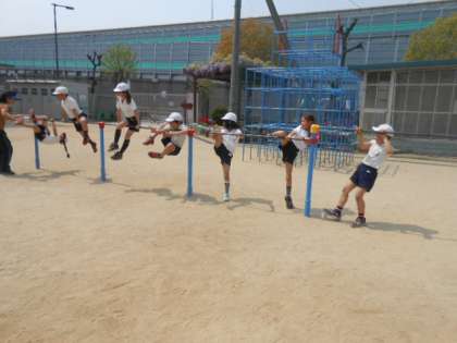 それだけじゃなく、見ている子どもたちも、「○○ちゃん、もうちょっと!」「△△ちゃん、出来たで!」という声をかけ合っていました。優しく、元気いっぱいな3年生です。