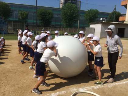 大きい玉に少し戸惑いながらも、楽しかったようです。