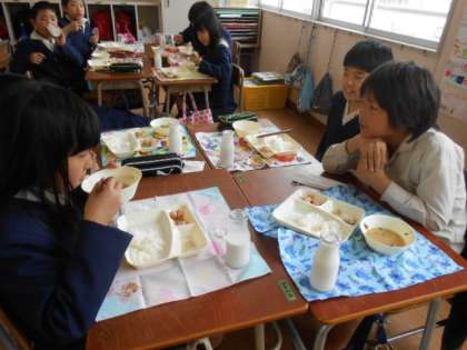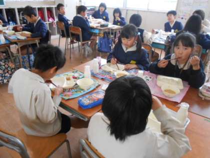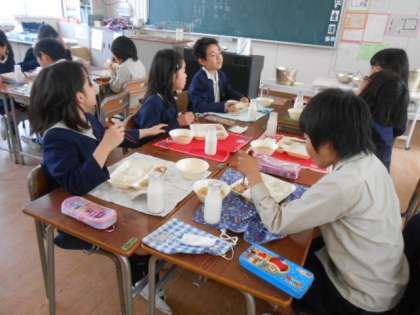 今日は、高学年の給食に突撃しました!5−1は、とても賑やか!放送で流れている歌をみんなで大合唱しながらの楽しい給食でした♪