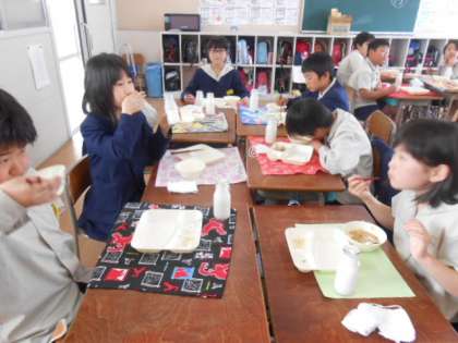 次は5−2です!女の子からも「おかわり!」の声が!たくさん食べて、たくさん遊んで、たくさん勉強してください!