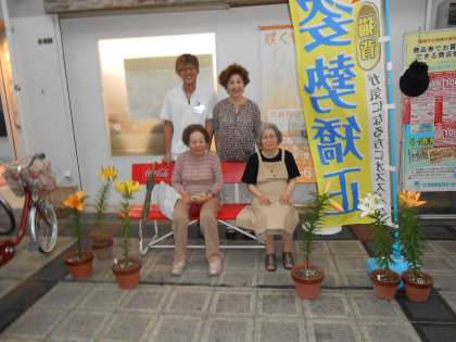 商店街の方に、育てたユリをプレゼントしました。はぐくみネットのコーディネーターの