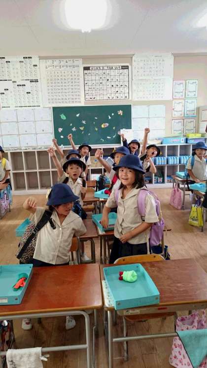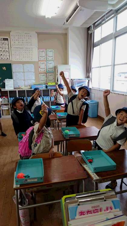 カラフルスイーツ、よーいピョン♪、大玉ころがし、全体演技。