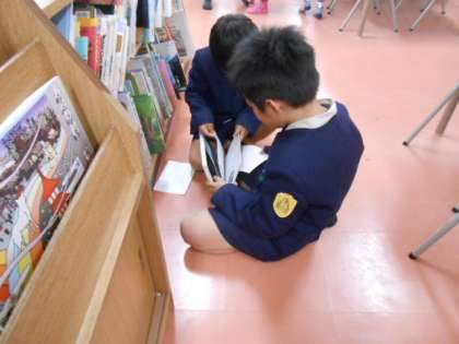 とても1年生とは思えない静かさ!図書室の約束、きちんと守れていました。