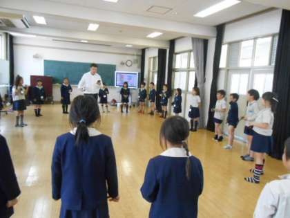 「What you’re name?」と、「My name is〜」の練習をしているようでした。