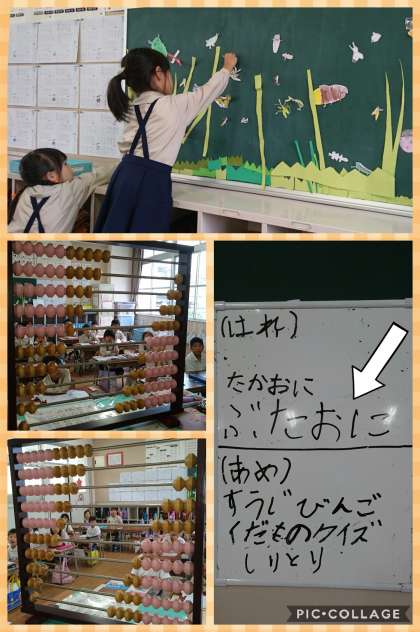 後ろの黒板が日に日に秋の野原になっていきます。