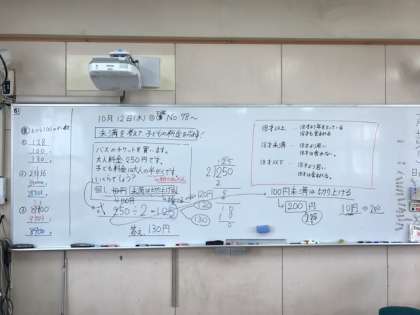 このところ、「上から〇〇の概数」であったり、「一万の位までの概数」であったりと、色々と言葉の学習をすることが多くなってます。そんな中、今日は、バスの子どもの値段についての話題を取り上げました。